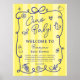¡Ciao Bebé! Bienvenido a los clientes con estilo con este encantador cartel de bienvenida para una ducha bebé. Con un divertido diseño de inspiración italiana retro con limones dibujados a mano, arcos y garabatos con temática de bebé sobre un fondo de rayas amarillas, este cartel marca el tono para una dulce y alegre celebración. ¡Un toque perfecto para una ducha de limón o de temática italiana!