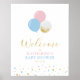 Bienvenido a tus invitados con esta linda y moderna señal de bienvenida para baby shower. Este diseño de cartel presenta tipografía elegante y globos con confeti en rosa, azul claro y dorado. Decoración perfecta para una fiesta de revelación de género. Invitaciones y suministros para fiestas a juego están disponibles en mi tienda BaraBomDesign.