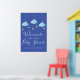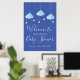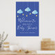 Perfecto para dar la bienvenida a amigos y familiares a una ducha especial para bebés, rociar o ducharse en pareja. Con unas bonitas nubes azules y estrellas doradas en las cuerdas, con un fondo azul, este cartel de bienvenida de bonito es perfecto para todos los niños pequeños que van en camino. Diseñado por Thisisnotme©
