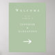 Bienvenido al boda del [Nombre de la Novia] y [Nombre del Groom] los estados de signos en blanco y negro, con la fecha justo debajo. Una pequeña flecha, puedes señalarla de cualquier manera, ayuda a la gente a encontrar al fiesta. Simple, fácil, y te lleva adonde necesitas ir!