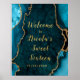 Este elegante y glamoroso cartel de bienvenida de dieciséis años presenta un verde azulado fondo de mármol agate azul con falsos toques purpurinas dorados. El texto combina el guión manuscrito y las fuentes sans serif modernas para un aspecto elegante y sofisticado. Esto será perfecto para una fiesta de otoño e invierno dulce de dieciséis años.