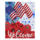 Bienvenido 4 de julio con bandera americana y flores de acuarela