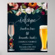 Póster Bienvenido a Rose & Brews Wine Navy Wedding Sign