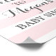 Bienvenido al poster de signos de Baby Shower con nombre personalizado en rayas blancas y rosas claras con flores de color acuático rosa melocotón con letras de estilo manuscrito.