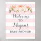 Póster Bienvenido Baby Shower Rótulo Flores rosas