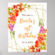Esta hermosa y elegante señal de bienvenida cuenta con acuarela de granada, manzanas, uvas, champiñones y follaje. El texto combina fuentes manuscritas y serif para un aspecto elegante y moderno. Esto es perfecto para un cumpleaños otoño rústico.