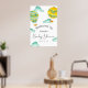 Una linda ducha de bebé neutra desde el punto de vista del género recibe a un poster con una combinación de colores que funciona muy bien para una niña o un niño. Globos de aire caliente amarillos y acuáticos flotan alrededor del texto personalizado que puedes personalizar con el nombre del invitado de honor y la fecha de tu evento.