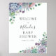 Póster Bienvenidos a Baby Shower con éxito morado y verde