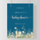 Este poster de bienvenida con una ducha de bebé de la marina de flores silvestres es perfecto para una ducha rústica para bebés. El diseño se compone de flores acuáticas rosas, rubias, amarillas y blancas, dispuestas en elegantes ramos.