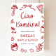¡Diga Ciao Bambina! ¡y dé la bienvenida a todo el mundo con un toque de encanto italiano! 🍕 ❤️ Este símbolo rojo italiano de bienvenida Ciao Bambina Baby Shower está decorado con doodles de pizza a mano, detalles rojos juguetones y acogedores vestidos rústicos, la manera perfecta de saludar a los huéspedes en su ducha de bebé de inspiración italiana o con tema de pizza. Personalízalo con el nombre y la fecha de ducha de la futura mamá para que le den un toque especial. Simplemente edita, ordena y muestra una entrada que es divertida, cálida y llena de amor! Perfecto para una ducha italiana, un brunch de pizza o cualquier celebración dulce que diga Benvenuta, Bambina. 🍕 ✨ 💕