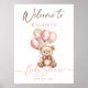 Oso de peluche con globos chica rosa ducha de bebé poster de bienvenida.