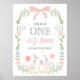 Signo de bienvenida de primer cumpleaños de One Silly Goose Floral Rosa Bow