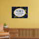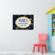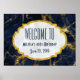 Un poster de bienvenida de cumpleaños con un fondo elegante y elegante de mármol azul marino y dorado. En la parte superior hay un marco decorativo elegante con un Relieve metalizado de oro falso y un texto personalizado en el interior.