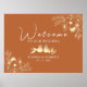 Bienvenidos a sus invitados con elegancia bohemio con nuestro cartel de bienvenida de boda Terracotta Burnt Orange. Con una romántica pareja de pájaros de amor rodeados de encaje floral dorado, este cartel emana encanto y sofisticación. La simple letra de caligrafía moderna añade un toque de romance, estableciendo el tono para una celebración memorable. Guíe a sus invitados con estilo y calidez mientras comienzan su viaje de boda con este elegante cartel de bienvenida.