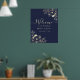 Elegante y atemporal, este letrero de bienvenida de boda en azul marino y dorado presenta ilustraciones florales románticas dibujadas a mano en hoja de oro falso. La escritura en caligrafía moderna añade un toque sofisticado, lo que lo hace perfecto para bodas formales o nocturnas. Personalice con los nombres de la pareja y la fecha de la boda para dar la bienvenida a sus invitados con estilo.