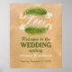 Este cartel de bienvenida boda es perfecto para cualquier pareja que planee una celebración romántica de bodas en la playa. El diseño presenta una corona tropical de hojas de palma, conchas y pez estrella sobre un fondo de arena con una redacción coordinada en color. El diseño sencillo puede ser personalizado para su evento especial y será el poster perfecto para cualquier fiesta tropical con temática, incluyendo duchas de novias, compromisos, duchas de bodas, fiestas de cumpleaños y mucho, mucho más.