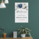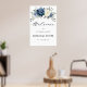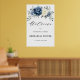 Póster de bienvenida a la cena de ensayo floral azul polvoriento que incluye un elegante ramo de flores de color azul marino, azul real, blanco, dorado, marfil champán, rosa desmayado, capullos de ranunculus y hojas de eucalipto verde salvia y ramo de acuarela elegante. Por favor, no dude en contactarme para cualquier ayuda en la personalización o si necesita cualquier otro producto con este diseño.