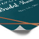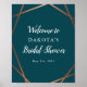 Bridal Shower poster de bienvenida con marco geométrico de oro rosa falso sobre un fondo verde azulado. Personalizar este producto agregando el nombre de la futura novia y la fecha del evento. Diseño elegante y moderno.