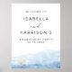 Esta plantilla de letrero de bienvenida para fiesta de compromiso presenta un baño de acuarela azul bebé y copos dorados elegantes. Edite fácilmente *la mayoría de* los textos para que coincidan con su evento.