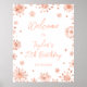 Este elegante y glamuroso cartel de bienvenida para la fiesta de cumpleaños incluye copos de nieve purpurina rosa de color agua y chispas sobre un fondo blanco. El texto combina el guión manuscrito y las fuentes sans serif modernas para un aspecto elegante y sofisticado. Es perfecto para una fiesta de invierno o de cumpleaños de Navidades. Gráficos de www.etsy.com/uk/shop/SunflowerDayLove