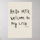 Hi MTV Bienvenidos a mi Poster de cuna, impresión de mediados de siglo, arte estético de pared, arte monocromo de paredes de los años 70, impresión en baudios, impresión tipográfica, Poster de MTV