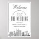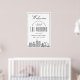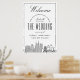 ¡Saluda a la buena gente que viajó de cerca y lejos para venir a tu ceremonia de boda con este encantador poster de bienvenida! Seguramente pondrán una sonrisa en su rostro mientras caminan por la iglesia, salón de baile o lugares de su ceremonia, y sirven como una apreciación de su presencia. El moderno y divertido poster de bienvenida boda de estilo deco está diseñado específicamente para un boda que está teniendo lugar en la hermosa ciudad de Nashville, Tennessee. Cuenta con un gran saludo de bienvenida hacia la parte superior y un elegante ilustracion del paisaje único de la ciudad que descansa hacia el fondo. Entre esto se encuentra la información del día de la boda, incluyendo la fecha, la ciudad y los nombres de la encantadora pareja de futuros casados.