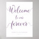 Bienvenidos a nuestro símbolo para siempre perfecto para el boda con un tema morado