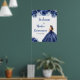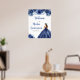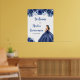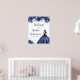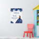 Este cartel de bienvenida de Quinceanera cuenta con una bella princesa en un vestido de bola azul marino con arreglos florales. Es perfecto para una fiesta de cumpleaños de Quinceanera.