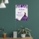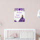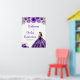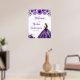 Este cartel de bienvenida de Quinceanera cuenta con una bella princesa en un vestido de bola morado oscuro con arreglos florales. Es perfecto para una fiesta de cumpleaños de Quinceanera.