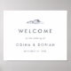 Este sencillo poster de bienvenida boda de montaña es perfecto para un boda al aire libre. El moderno diseño minimalista presenta una marina abstracta y un paisaje montañoso de color azul pizarra. Personalizar el poster con el nombre de la novia y el novio, y la fecha del boda.
