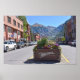 "Bienvenidos a Telluride, Colorado" por Catherine Sherman. La pintoresca Avenida Colorado en Telluride, Colorado, está rodeada de autos estacionados -mayormente camionetas y camiones- y edificios históricos bajo un cielo azul claro, con el rango de las Montañas San Juan de la Montaña Rocosa asomándose como telón de fondo. Saludar a los visitantes y a los residentes es un gran plantador lleno de flores coloridas que ocupa un lugar destacado en el primer plano, con el nombre de la ciudad "Telluride". Esta zona forma parte del distrito histórico de Telluride. Telluride es la sede del condado de San Miguel en el suroeste de Colorado. El pueblo es un antiguo campamento de minas de plata en el río San Miguel, en la parte occidental de las montañas de San Juan. La primera reclamación por minería de oro se hizo en las montañas situadas por encima de Telluride en 1875, y siguió una pronta liquidación de lo que ahora es Telluride. El pueblo fue fundado en 1878 como "Columbia", pero debido a la confusión con un pueblo de California del mismo nombre, fue rebautizado Telluride en 1887 por los minerales de telurida de oro encontrados en otras partes de Colorado. Estos minerales teluridos nunca se encontraron cerca de Telluride, pero las minas de la zona durante algunos años proporcionaron zinc, plomo, cobre, plata y otros minerales de oro. El Telluride, situado en un cañón en medio de picos boscosos, se encuentra al pie de un popular complejo de esquí y golf. El histórico distrito de la ciudad alberga monumentos como la Ópera Sheridan, un local de artes escénicas construido originalmente en 1913, y el Museo Histórico de Telluride, que muestra la historia local en un hospital reformado construido en 1896. El New Sheridan Hotel está situado a la izquierda de la calle. Construido en 1895, restaurado cien años después y reformado en 2008, el New Sheridan Hotel cuenta con 26 habitaciones y suites. El Distrito Histórico de Telluride, que incluye una parte significativa de la ciudad, está inscrito en el Registro Nacional de Lugares Históricos y es también uno de los 20 monumentos históricos nacionales de Colorado.