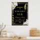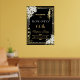 Personalice esta seña de bienvenida de estilo Art Deco floral de época Great Gatsby roaring 20s fácil y rápidamente, simplemente pulse el botón personalizar it para reorganizar y formatear el estilo y la ubicación del texto. Presenta un marco Art Déco de moda, orquídea blanca de marfil y flores de lirio, perlas brillantes y un esquema de color negro y oro. También disponible en formato de descarga instantánea. ¡Artículos coincidentes disponibles en la tienda! (c) El estudio Happy Cat Studio.