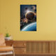 Esperando a que la órbita geoestacionaria deje el planeta de origen y explore nuevos mundos en el espacio ultraterrestre. Obra digital de Liz Molnar. Planetas, estrellas, nubes espaciales, luces fueron hechas con efectos básicos de Photoshop y pinceles, superficies de planetas creadas a partir de fotos.