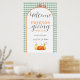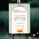 Diga Bienvenidos a los invitados en su celebración de Acción de Gracias con este hermoso cartel de acción de gracias de otoño. Este cartel de tablero de espuma presenta hojas caídas modernas y elegantes de color otoñal y calabazas con fondo de mantel a cuadros. ¡Sólo personalizar con tu información y estás listo para irte!