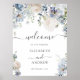 Póster Bienvenidos Bodas florales azules y blancos de mod