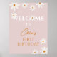Boho retro color rosa rosa margarita floral chica primer cumpleaños poster de bienvenida.