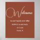 Póster de bienvenida de boda Terracotta con hermosa tipografía blanca sobre fondo marrón o naranja quemado. Consulte más productos con este diseño en la colección a continuación.