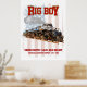 Grunge design of the Big Boy vintage steam train with American flag in background. Classic United States of America Locomotive. Union Pacific Class 4014 Big Boy