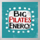 "Big Pilates Energy" es un divertido diseño de texto con una forma de acento blanco rodeado de puntos de textura caprichosos y blancos.