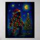 Póster Bigfoot Christmas Sasquatch Santa Hat Starry Night