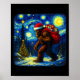 Bigfoot Santa Christmas Starry Night Sasquatch Van Gogh Art