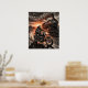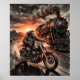 Póster Biker Races Steam Train Desert Sunset Charcoal Art