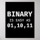 Póster Binary Es Tan Fácil Como 01, 10, 11 Codificación D