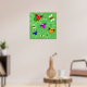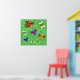 Cartoon graphic of cute birds and bees fluttering around in the garden
