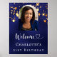 Bring warmth and elegance to your celebration space with this navy blue and gold star wall poster, featuring a beautiful arched photo frame and shimmering gold accents. The rich midnight blue tones and golden stars make it perfect for winter birthdays and evening events.