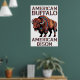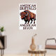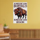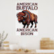 Un ilustracion de un bisonte con una cabecera de plumas coloridas.