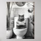 Póster Black and White Bathroom Cat Print, Funny Posters,