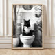Póster Black and White Bathroom Cat Print, Funny Posters,