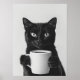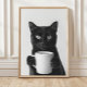 Póster Black Cat Drinking Coffee Wall Art, Black and Whit