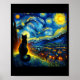 Póster Black Cat Funny Cat Lover Mom Daddy Starry Night V